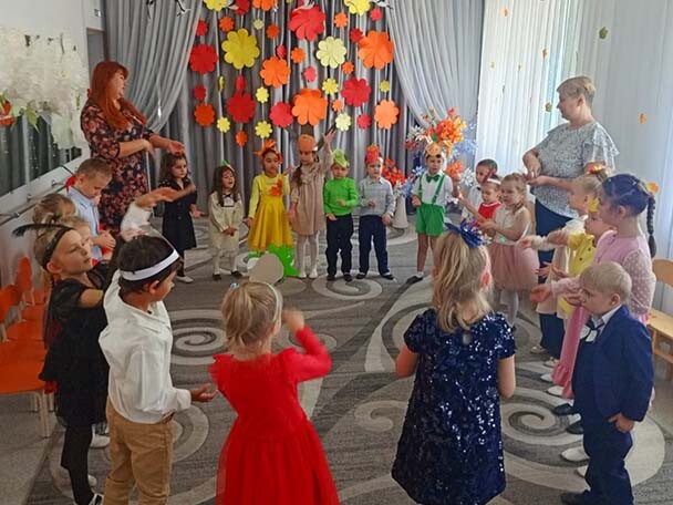 В старшей группе "Весёлые ребята" прошел настоящий праздник осени – замечательный, красочный утренник под названием «Бал овощей и фруктов». Ребята пришли в ярких костюмах фруктов,ягод и овощей и с удовольствием демонстрировали свои таланты: танцевали под веселую музыку, пели звонкие песенки, посвященные щедрому осеннему урожаю, и даже разыгрывали забавные сценки. Не обошлось и без активных игр, которые подарили детям еще больше радости и смеха.